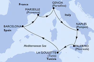 Velika pot zahodnega Sredozemlja z MSC Euribia